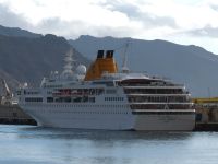 2005 Febrero 14, una ola barre el puente, inutilizando el gobierno eléctrico del buque. A la deriva, a 60 millas de Menorca, con 732 pasajeros a bordo. Reparado de fortuna.